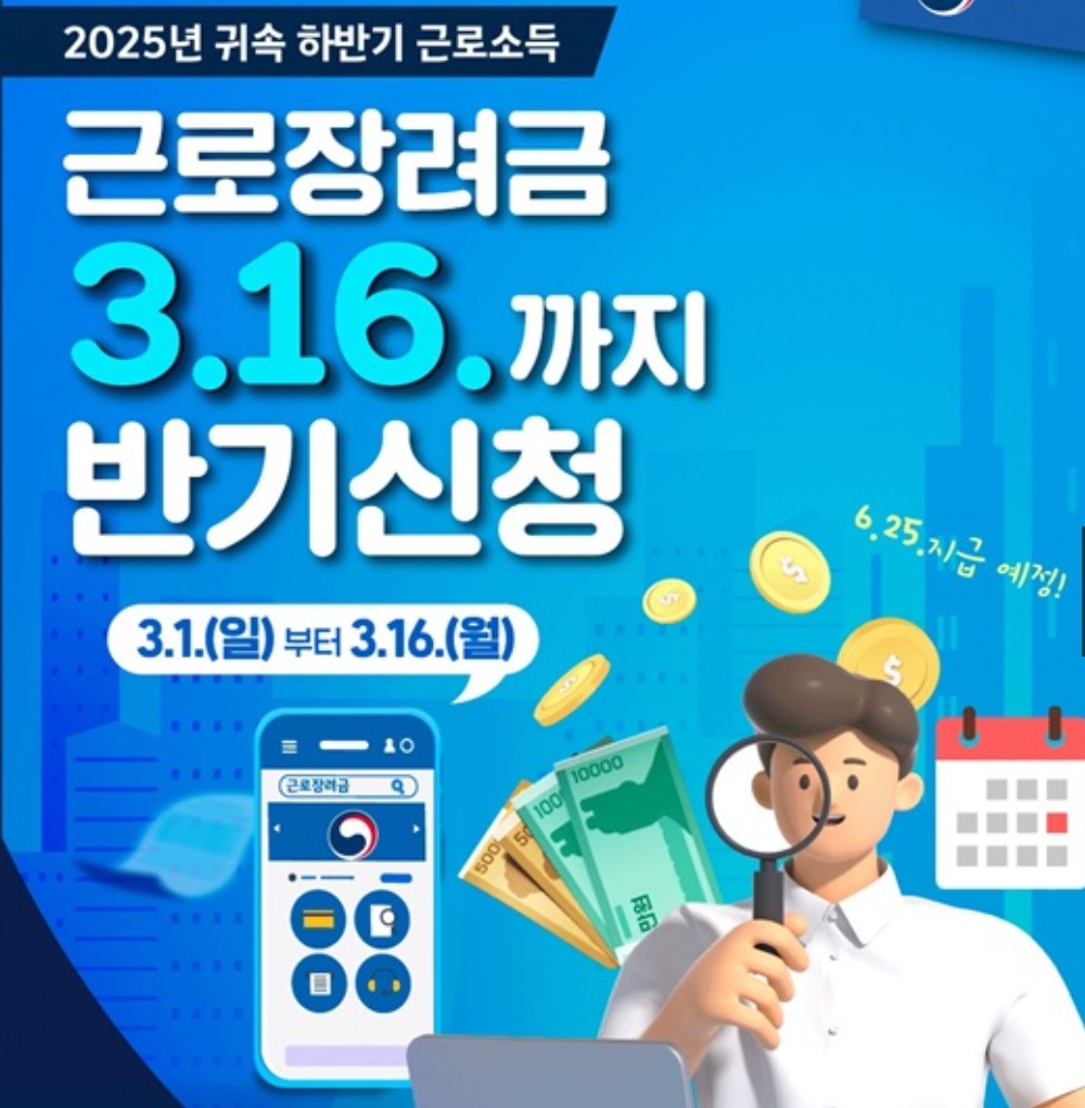 2025년 하반기 근로소득이 있는 근로자를 대상으로 근로장려금 반기 신청이 진행되고 있습니다.