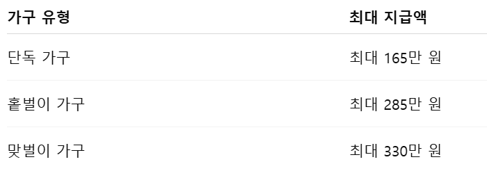 실제 지급액은 소득 수준과 재산 규모에 따라 달라질 수 있습니다.
